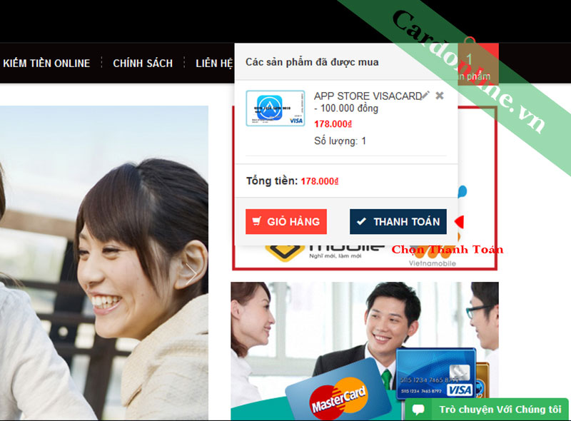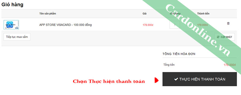 Bước 2: Đặt thẻ, gửi đơn hàng cho Cardonline: