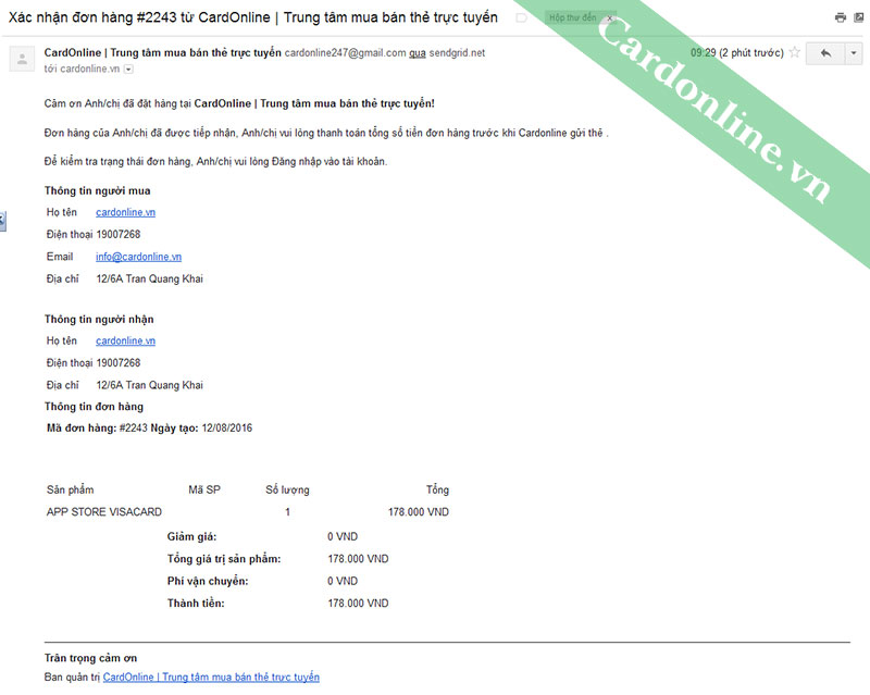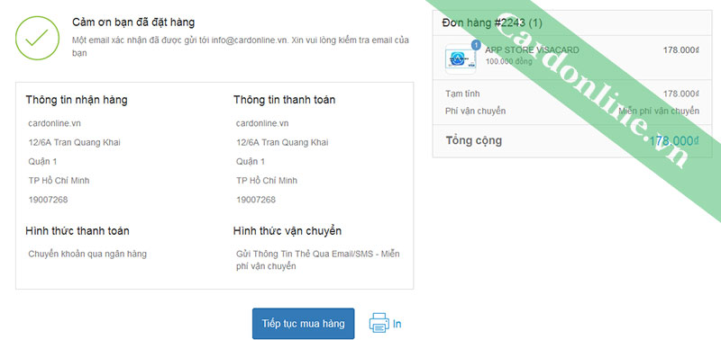 1. Thông tin người mua hàng: Nếu vận chuyển là gửi thông tin qua mail. Cardonline.vn sẽ gửi thông tin thẻ vào email bạn cung cấp.