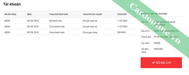 Bạn có thể xem trình trạng đơn hàng nếu bạn có đăng ký tài khoản với Cardonline.vn trước khi thanh toán: Chọn tài khoản.