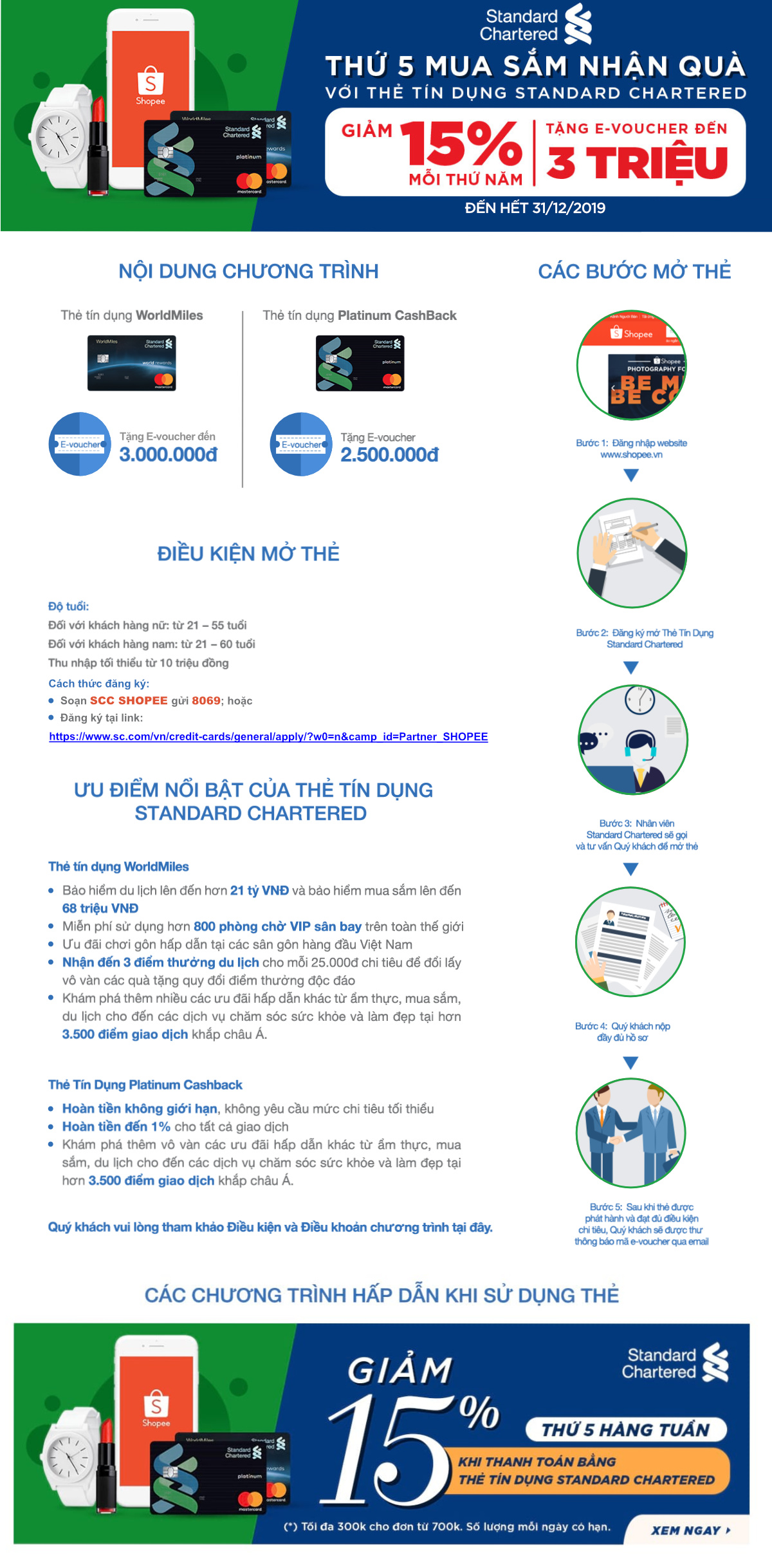 Tặng E-voucher đến 3 triệu, khi mua sắm với thẻ tín dụng Standard Chartered ở Shopee